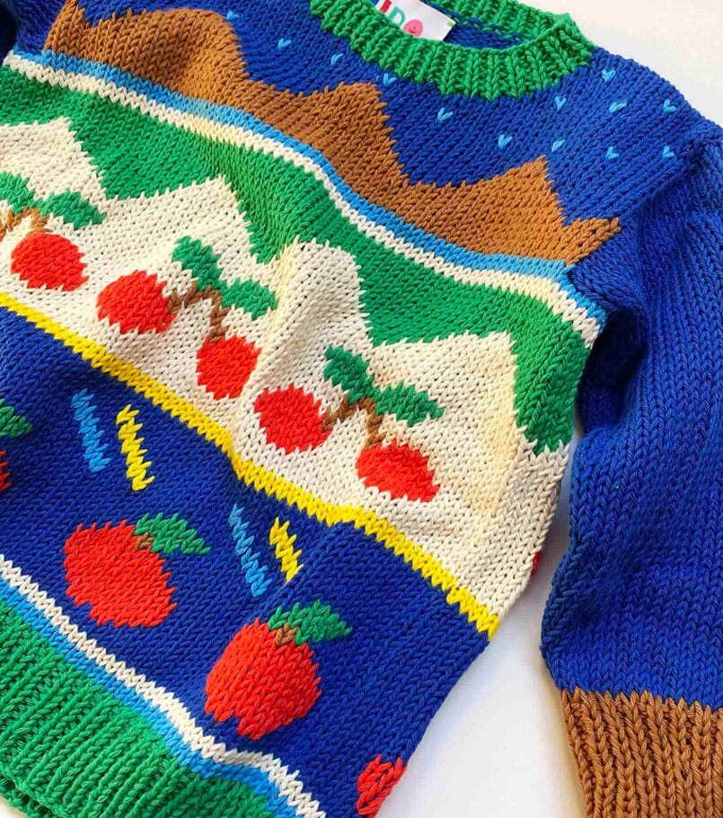 Handknitted cotton tutti frutti sweater.