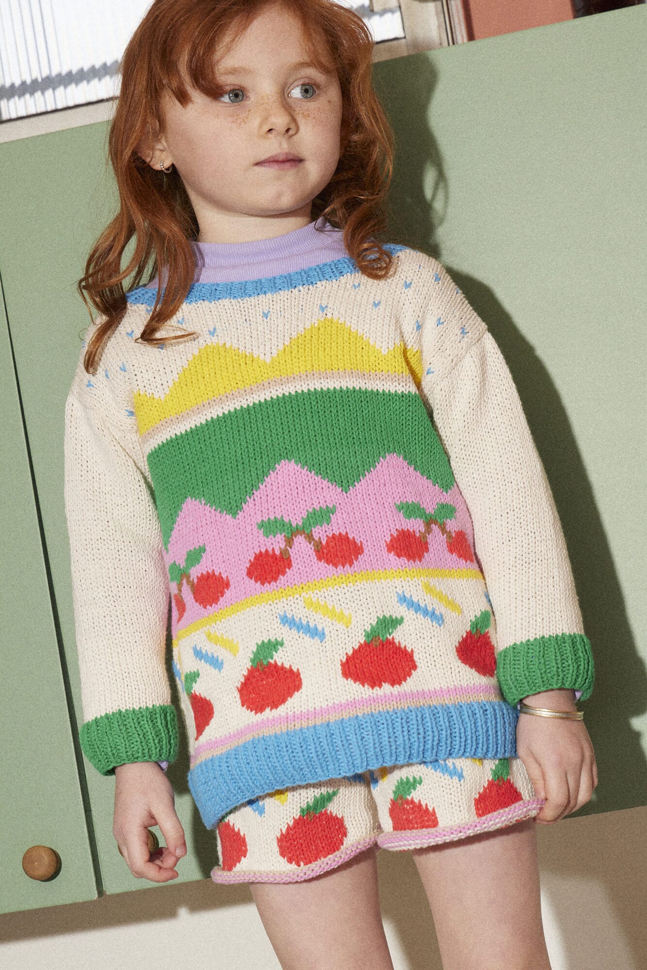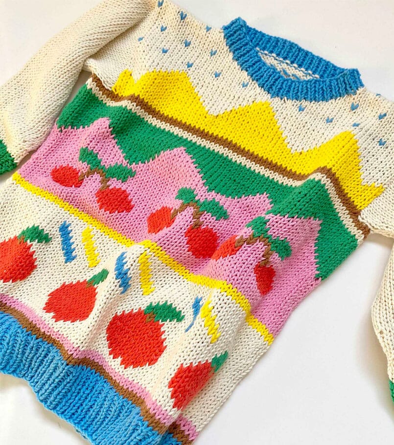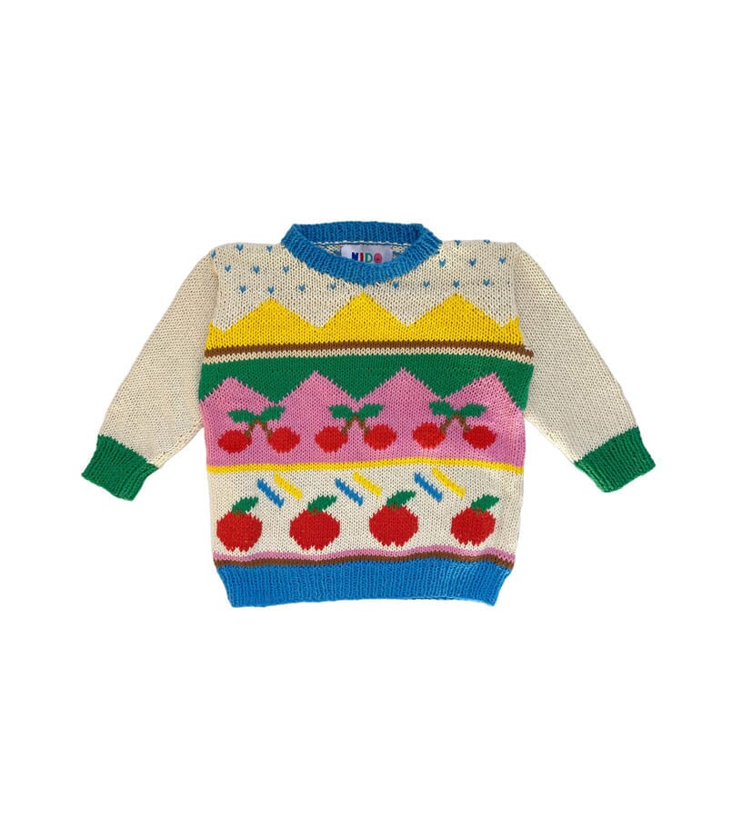 Handknitted cotton tutti frutti sweater.
